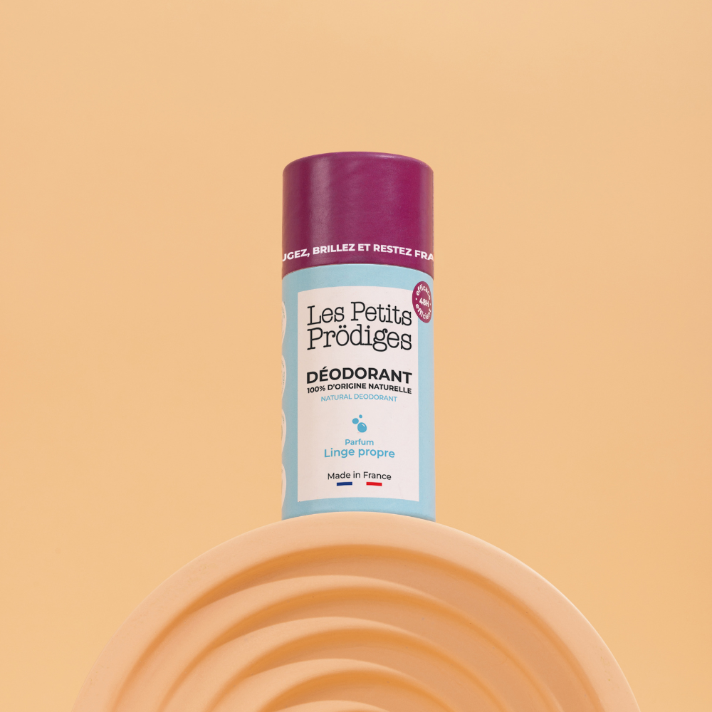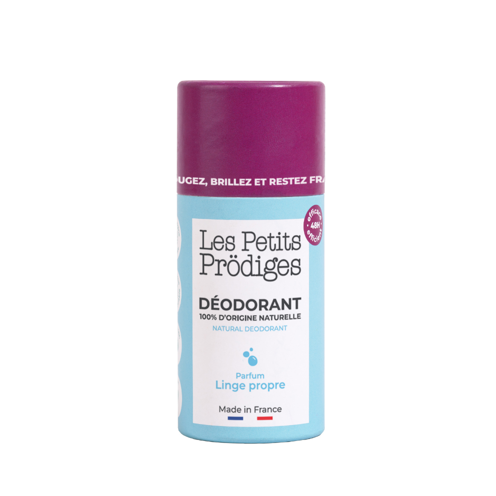 🧺 Festes Deodorant mit Duft nach frisch gewaschener Wäsche – 48 Stunden Wirkzeit 💪 In einer plastikfreien, 100 % natürlichen und in Frankreich hergestellten Kartonverpackung ♻️🇫🇷, die keine Rückstände hinterlässt!